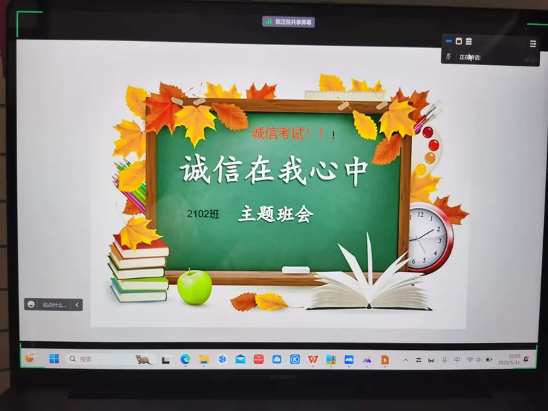 为增强学生的诚信意识,营造良好的考试氛围,伟德国际victor1946各班于5月28日至6月5日以线上与线下相结合的方式召开了以“夯实诚信之基,践行时代使命”为主题的诚信考试教育主题班会。