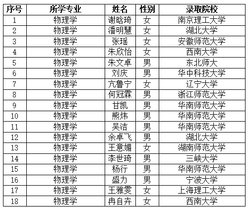 1、物理学(师范类 学制四年 授予理学学士学位)