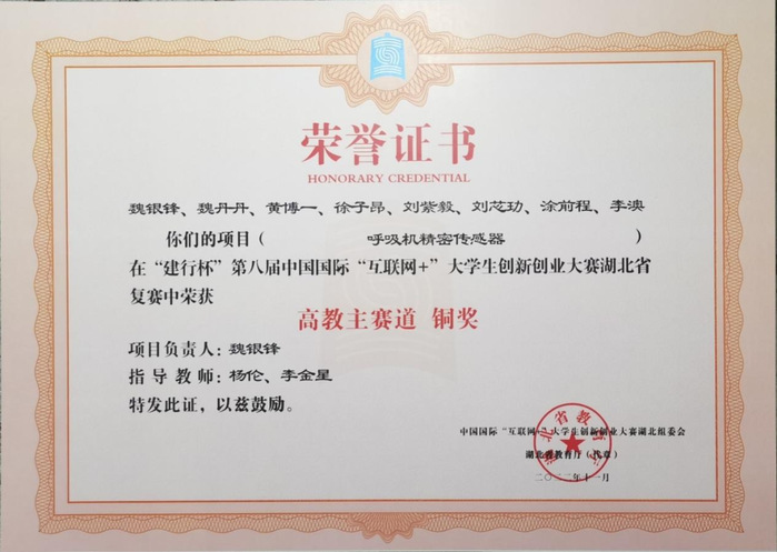 魏银锋等同学获得“互联网+”大赛省赛铜奖