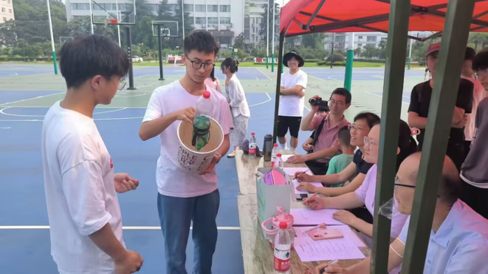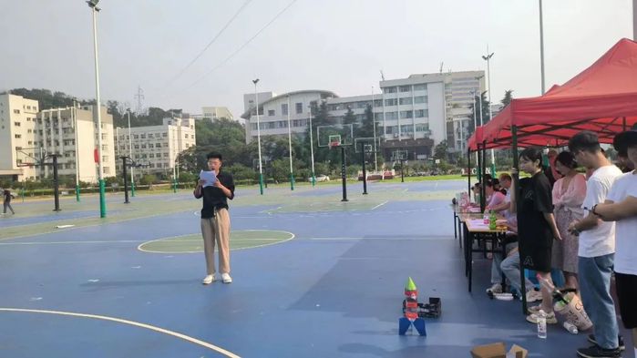 为全面落实素质教育,提高学生的动手能力,培养学生的创新思维,丰富学生的课余活动,伟德国际1946中学科学教育协会于6月11日上午在校园篮球场举办“水火箭”大赛。本次比赛由来自21级的10组选手参赛,由丁逊老师、樊超杰老师、侯向锋老师和王聪等老师作为参赛评委。