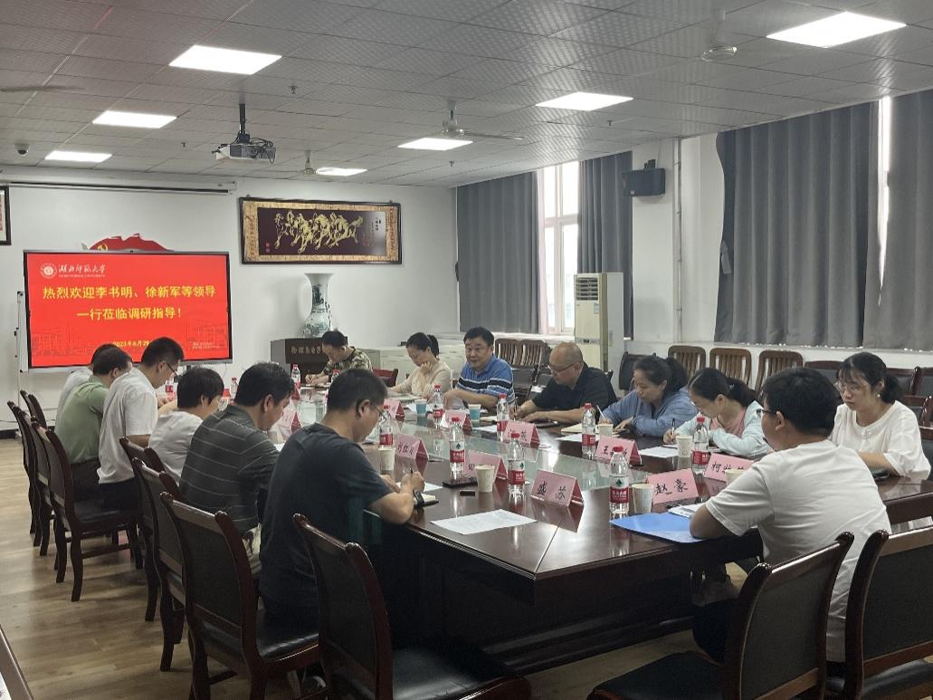 2023年6月29日下午,国有资产与实验室管理处处长李书明、后勤管理中心副主任徐新军等一行到我院调研指导工作。学院班子成员、实验中心主任、教师代表等参加调研座谈会议。会议由国有资产与实验室管理处李书明处长主持。