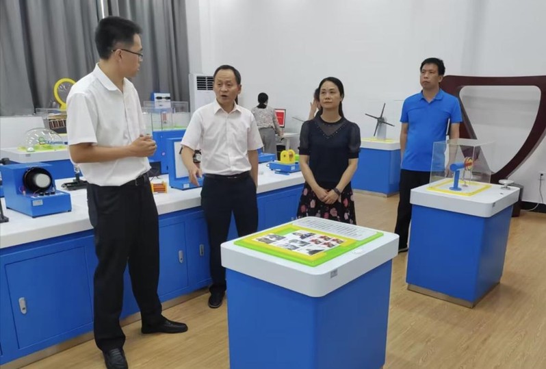 陈汉平代表黄石市科协给我院物理科普基地进行了授牌。在基地参观时,他详细了解了基地运营和管理情况。对基地投入和建设给予了赞许,对基地开放活动、科普知识下基层等方面工作表示了充分肯定,对基地老师和志愿者表达了慰问。陈汉平还对基地后续工作进行了指导,他指出,基地要进一步加强场馆标识建设,加大服务黄石基础教育等方面的活动开展力度,增强科普服务功能。