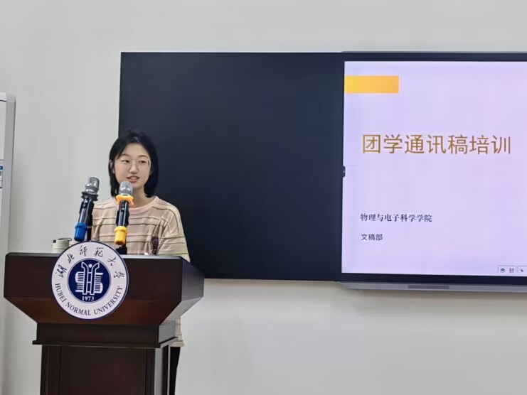 会议伊始,程梦瑶从通讯稿的定义出发,详细介绍了通讯稿的特点、要素,以及规范格式,强调了通讯稿的时效性、真实性。她鼓励学生干部多写多练,在完成相关稿件撰写的同时,收获个人能力的提升。