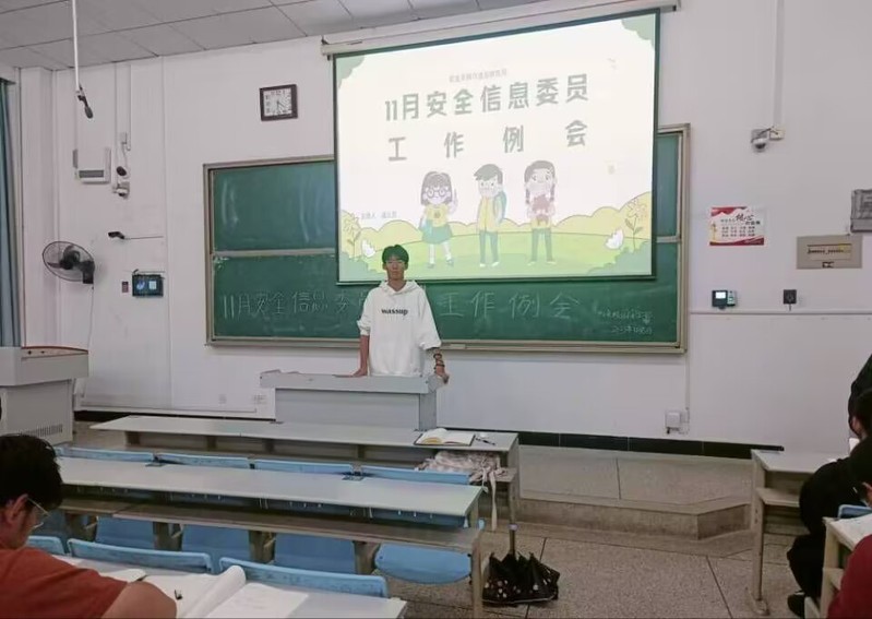 最后,学院校园安全部副部长潘立晨结合实际案例,对校园安全教育的重要性进行了强调,并希望各班安全信息委员作为学生干部,要积极发挥带头作用,把校园安全工作具体落实到班级。