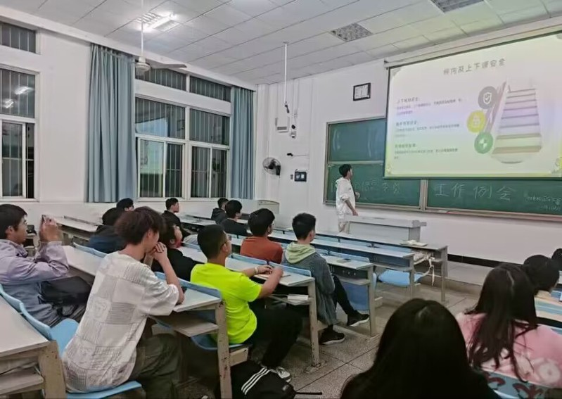 会议伊始,学院校园安全部副部长潘立晨提醒各班安全信息委员要以身作责,认真聆听本次工作例会的内容。随后,他从校内课间安全、道路交通安全、消防用电安全、防溺水安全、防范网络诈骗、饮食安全这六个方面进行了安全知识普及。