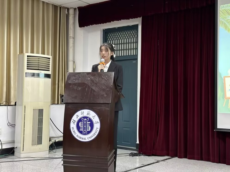 在学道德模范环节中,伟德国际victor1946实践队的李佳乐和张婷婷讲述了暑期在两所小学的支教故事,分享了他们的支教心得。