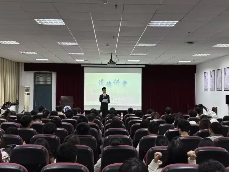 为深入学习贯彻习近平新时代中国特色社会主义思想,践行社会主义核心价值观,弘扬乐于奉献、服务社会的优秀道德品质,营造良好生活氛围,提升学生道德素养。11月9日晚,国有资产与实验室管理处、审计处以及伟德国际victor1946在信息大楼二楼学术报告厅举办道德讲堂活动。相关单位领导、教师和学生代表参加本次活动。此次活动由伟德国际victor1946团总支学生干部王更宇主持。