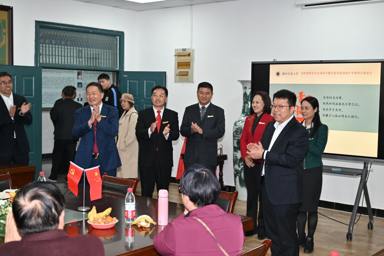 下午79级座谈会由校友乐红勇、肖红英主持。会前,79级物理系校友播放了毕业40周年暨庆祝母校50周年华诞的视频。孙丹娟、刘美风向校友们表示热烈的欢迎,向莅临座谈会的老教师们致以崇高的敬意。他们表示,学院全体师生一定会倍加努力,竭尽全力把学院建设好、发展好,这既是校友们对母校的期许,也是学院实现跨越式发展的需要。