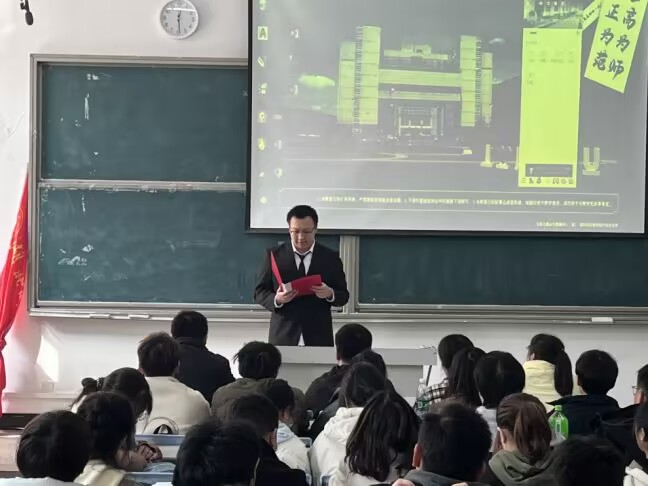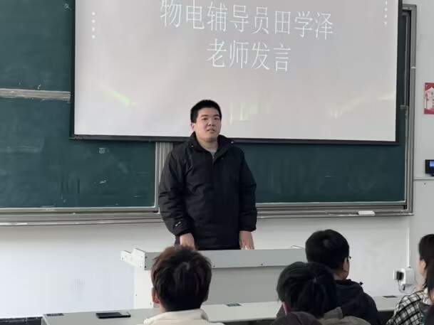 开班仪式结束后,辅导员吕剑为学员进行团课第一讲,展示了先辈的光荣事迹,讲述了大学生应当具有家国情怀,同时对参与团课的学员提出了要求,他希望,学员们利用所学专业知识,做到边学习、边探索、边创新。