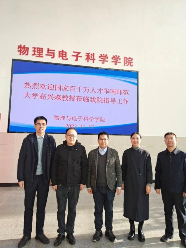 访问期间,高兴森教授参观了光电材料与器件、光量子信息技术、飞秒激光技术等实验室,就实验室后续建设、学科发展、国家自然基金的申报以及研究生培养等等方面提出了宝贵意见。