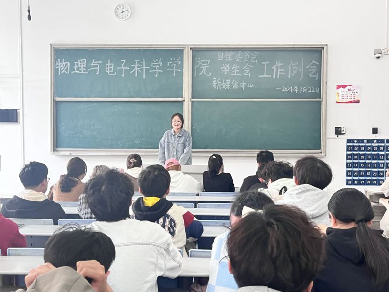 为进一步加强团学干部队伍建设,推进新学期学生工作的有序开展,伟德国际victor1946于3月22日中午12点在科技大楼9104教室召开本学期第一次团学工作例会。参加此次会议的有辅导员田学泽、自律委员会主席徐爽、学生会副主席韦笑、全体学生干部及各班班长。会议由秘书部干事鲜于东晨主持。