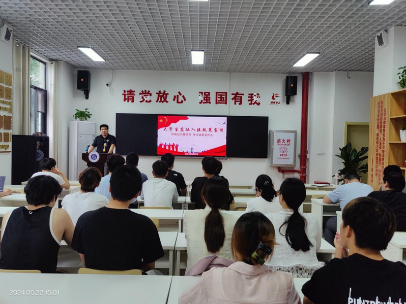 为弘扬爱国主义精神,激发广大适龄青年的参军报国热情。5月22日下午伟德国际victor1946于至诚一站式学生社区召开征兵政策宣讲活动。辅导员田学泽、优秀退役学生徐豪以及各年级学生代表参加,田婧主持。