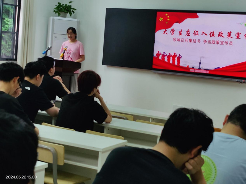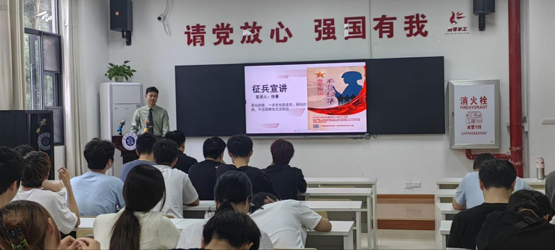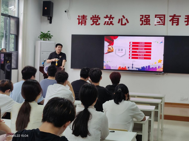 活动伊始,田学泽向同学们介绍了大学生征兵政策,从入伍基本条件、流程、政策优待、经济待遇、军队优惠政策,以及退役后的升学复学、就业创业等方面详细讲解了大学生入伍的优势,使同学们对参军有了更全面准确的认识。同时,他也呼吁同学们积极向优秀退役学生学习,培养深厚的爱国意识,积极响应国家号召,为国防事业贡献青春与热血。