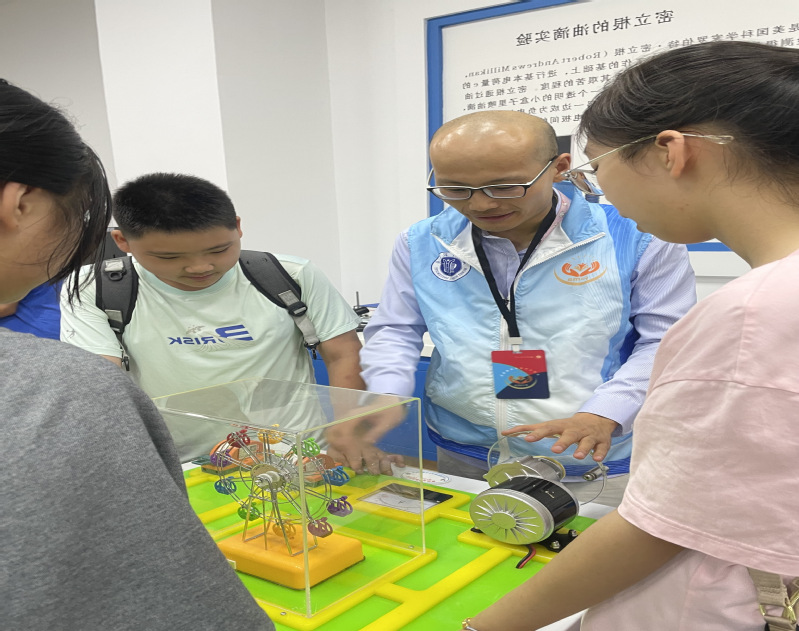 在量子光学实验室,第十六中学的老师和同学们被激光技术的奇妙应用所吸引。李海超老师用深入浅出的方式讲解了激光的基本原理及其在科技领域的广泛应用,让师生对现代科技有了更直观的认识。在电磁学实验室,樊超杰老师通过一系列精心设计的实验,让同学们认识到何为电流、电压、电阻,亲身体验到电磁感应、电磁波传播等物理现象,使同学们在动手实践中感受到了物理学的乐趣与魅力。