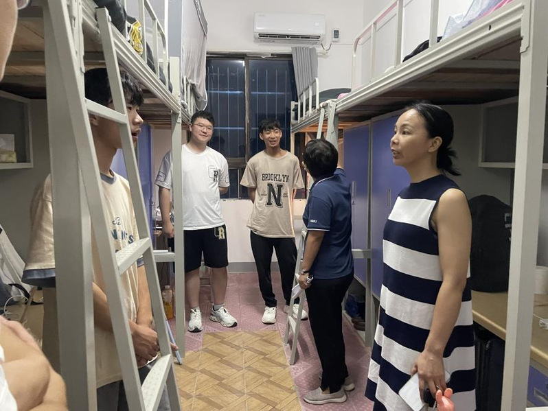 9月10日晚,校党委副书记、校长雷儒金,学生工作部、人武部部长李洁,物电学院领导班子、辅导员、班主任一同走访我院2024级新生宿舍,慰问新生,了解新生的生活与学习情况,让刚迈进湖师校园的懵懂新生深深感受到了学校领导及学院老师的深切关爱。
