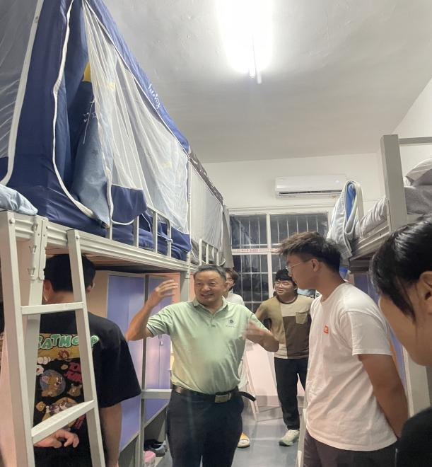 此次走访是学校“以生为本”教育理念的一次生动实践。雷校长一行深入宿舍,与新生进行了亲切而深入的交流,询问他们对大学生活的适应情况,倾听他们在学习、生活上的需求与困惑。雷校长强调,大学是知识的殿堂,也是成长的摇篮,希望同学们能够珍惜这段宝贵的时光,勤奋学习,勇于探索,不断提升自我,为未来的发展打下坚实的基础。