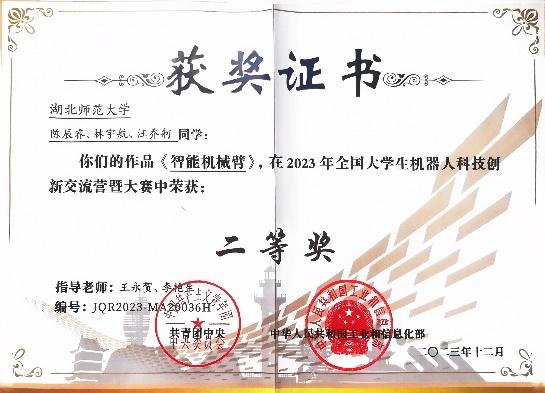 2023年全国大学生电子设计竞赛/全国大学生机器人科技创新交流营暨机器人大赛获得全国二等奖