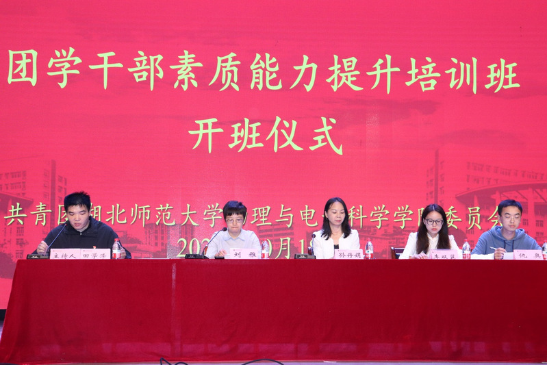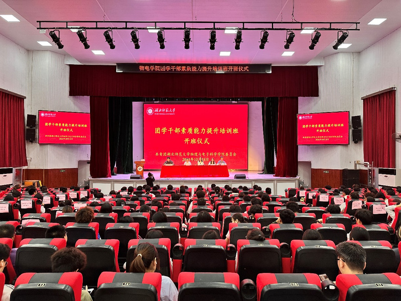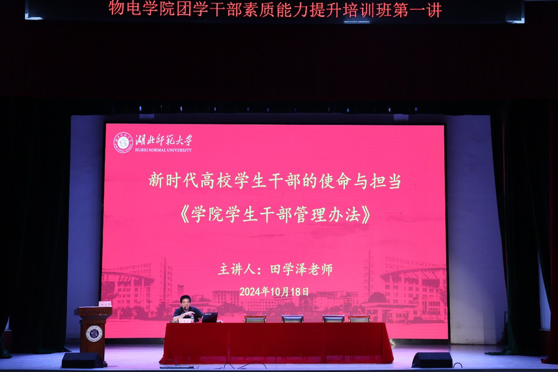 10月18日晚,伟德国际victor1946于湖师大礼堂举办团学干部素质能力提升培训班开班仪式,参与本次开班仪式的有学院党委书记孙丹娟、党委副书记刘雅、学工办李双翼老师、仇奥老师、学院全体团学干部、学院22级、23级、24级班干部代表。仪式由学院团委副书记田学泽主持。
