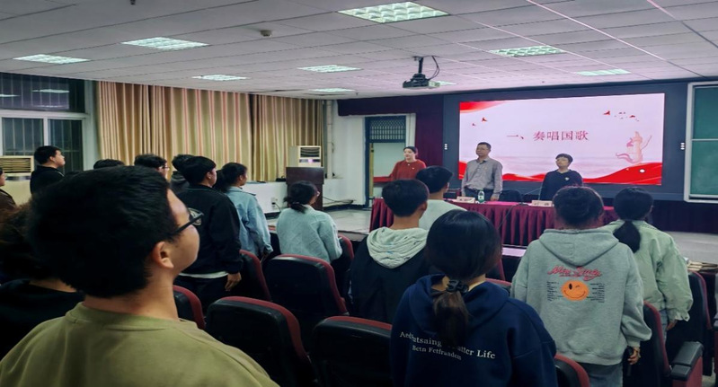 肃穆、激越的国歌响起,全体成员起立齐唱国歌,共同拉开第69期入党积极分子开班仪式的序幕。学生党支部负责人吕璐宣读了《2024年秋季第69期入党积极分子培训班学员守则》,并对培训纪律和学习考核等方面作出了详细要求。
