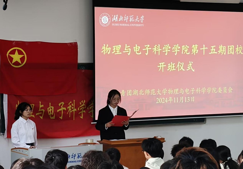 为深入学习贯彻习近平新时代中国特色社会主义思想和党的二十届三中全会精神,充分发挥中国共产主义青年团作为中国共产党的助手和后备军的重要作用,加强团组织队伍建设,伟德国际victor1946第15期团校于 11 月 13 日在教育大楼1j11教室正式开班,参与本次开班仪式的有马克思主义学院团委副书记方大鹏、学院团委副书记田学泽、学院团委学生副书记李佳乐、杨文谨以及本期团校全体学员。开班仪式由学院团委组织部干事周馨媛主持。