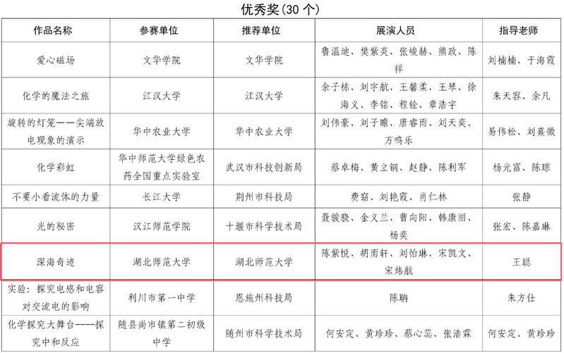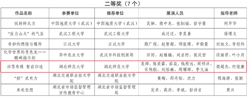 近日,湖北省科技厅发布了《省科技厅关于公布2024年湖北省科普讲解大赛和湖北省科学实验展演汇演活动获奖名单的通知》,由我校伟德国际victor1946选送的作品《冰雪奇缘,智启归途》和《深海奇迹》分别荣获2024年湖北省科学实验展演汇演活动二等奖和优秀奖;我校荣获优秀组织奖。