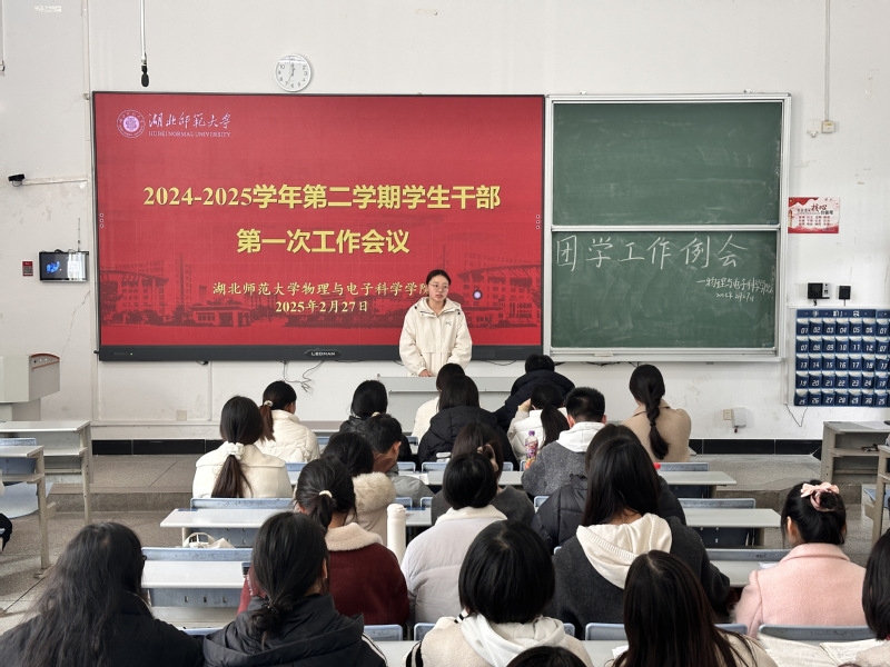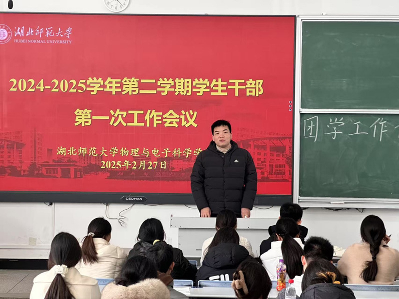 为统筹推进新学期团学工作,明确目标任务,2月27日中午,物电学院于科技大楼9101教室召开本学期第一次学生干部工作例会。学院辅导员田学泽、李双翼、仇奥出席会议,全体团学主席及各部门部长参加会议,会议由自律委员会主席黄娜主持。