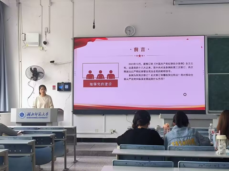 学环节中,谢馨悦、陈紫悦、杨文瑾和高岭四位学员创新采用原文精读+案例剖析的融合学习模式,带领全体学员系统研读《中国共产党章程》《中国共产党纪律处分条例》等重点内容。通过系统学习党章重点章节、深入剖析典型案例、积极开展心得交流等环节,实现了理论学习与思想教育的有机统一。切实增强了学员对党的规章制度精神实质和核心要义的深刻理解与准确把握。