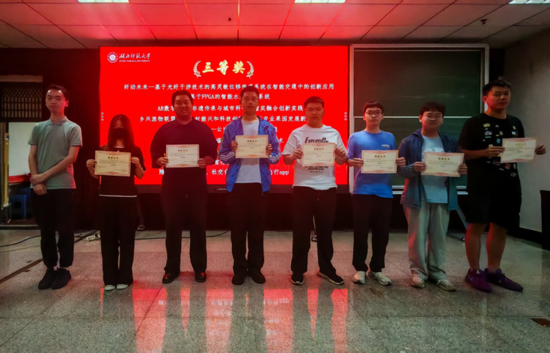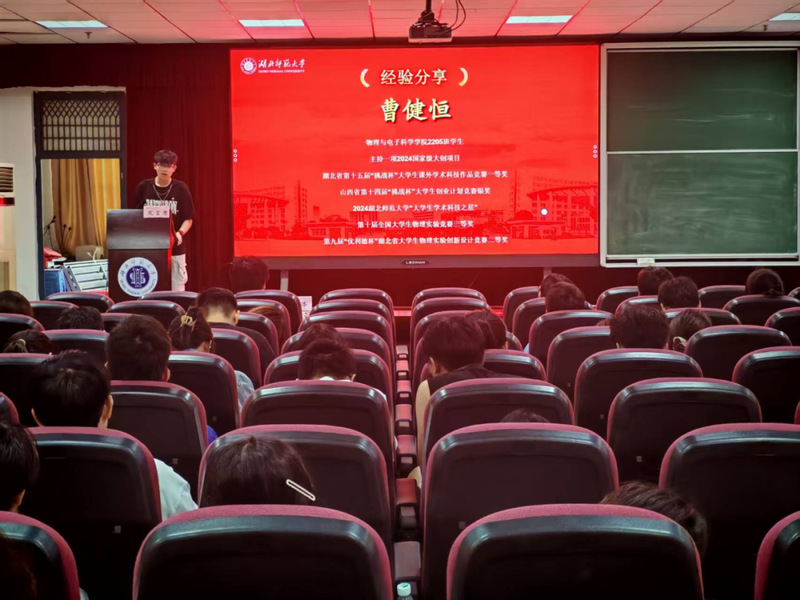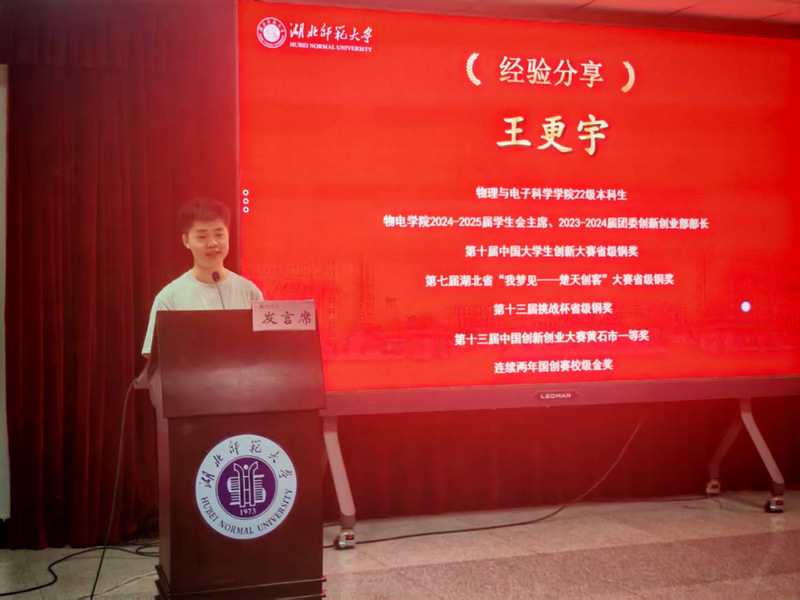随后进行颁奖仪式,参会嘉宾为大赛队伍颁发奖状并合影留念。经验分享环节,三位同学依次登台倾囊相授。物电学院2208班王更宇聚焦项目路演,结合自身经验,分享了如何通过精准表达和现场互动提升路演效果;文学院2204班王雅晴另辟蹊径,以跨学科融合为切入点,深入探讨物理类与文科类同学如何在创新创业大赛中协同作战,借助文科赛道优势打造优质项目;物电学院2205班曹健恒则围绕项目落地关键环节,系统阐述了资源申请的方法与团队合理分工的路径,为在场同学提供了实操性的指导。