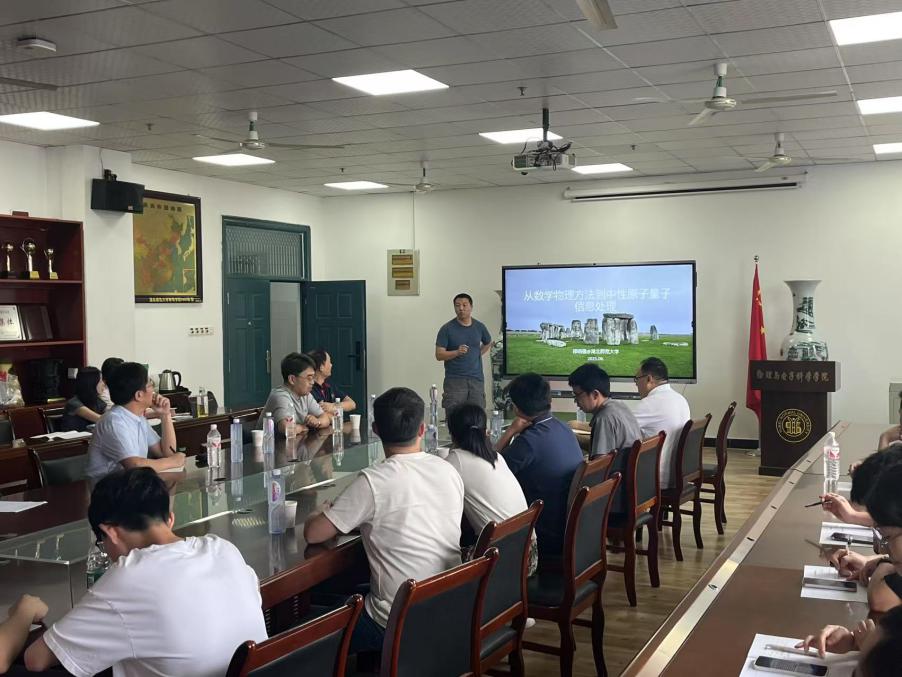 在首场报告“从数学物理方程到中性原子量子信息处理”中,邵晓强教授从本科阶段数学物理方程的基础知识出发,系统阐述了如何自然过渡到当前多学科的量子研究前沿。邵教授重点介绍了中性原子系统在量子计算、量子光学和量子模拟等领域的研究进展以及目前他们已经完成的工作。报告不仅为在场师生提供了启发与思路,还分享了研究生培养和科研工作的宝贵经验。