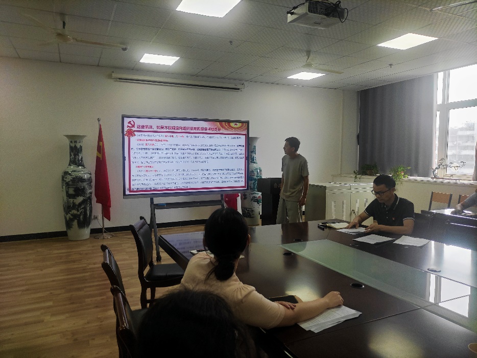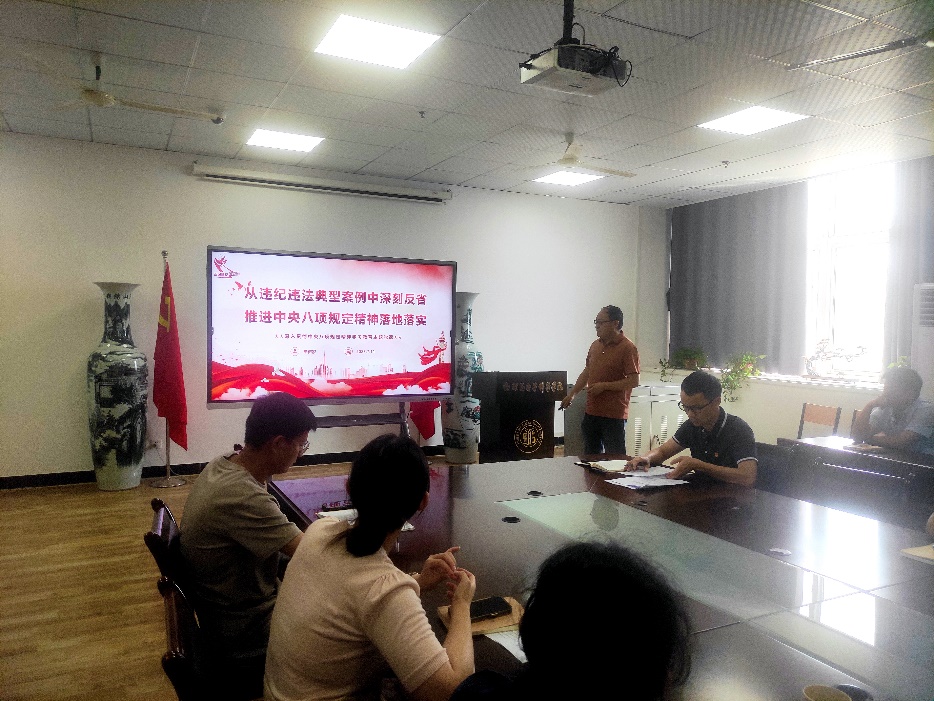 支部书记盛苏同志以“中共湖北省纪委办公厅关于黄冈市蕲春县7名党员干部在学习教育期间违规吃喝严重违反中央八项规定精神问题的通报”等案例,带领全体党员进行了警示教育学习。支部副书记邢令义同志主讲了《纪法解读和典型案例》专题党纪学习教育。