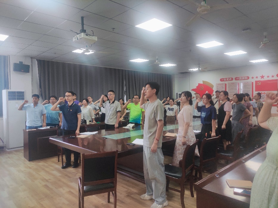活动中,全体党员集中交纳党费,重温入党誓词,集体诵读党章。