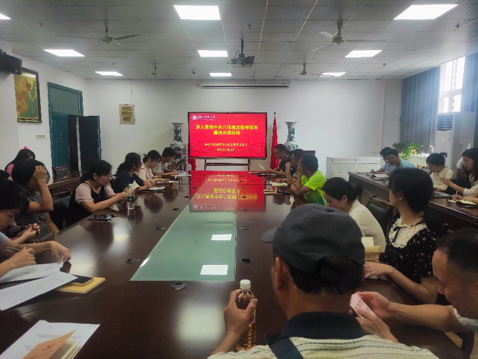 副院长单传家同志主讲了《从违纪违法典型案例中深刻反省推进中央八项规定精神落地落实》专题党课,积极推动深入贯彻中央八项规定精神学习教育,随后,陈立同志基于“深入贯彻中央八项规定精神学习教育”,围绕师德师风谈心得体会。