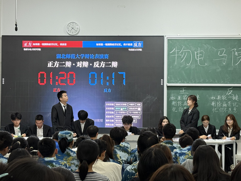 为推广辩论文化,锻炼大学生口才与思辨能力,拓宽知识视野,激发新生辩论热情,9月20日晚,我院联合马克思主义学院于科技大楼9101教室成功举办辩论表演赛。我院郭焱、裴乐、梅李伽霖、张振宇四位同学参赛,王思远担任本场比赛主持人。