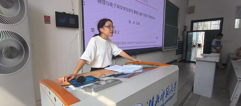 随后,李双翼带领学习委员学习《伟德国际victor1946学生课堂出勤与晚自习管理办法》,通过对文件的深入解读,与会学习委员进一步明确了查课具体流程、考勤规范与相关职责。