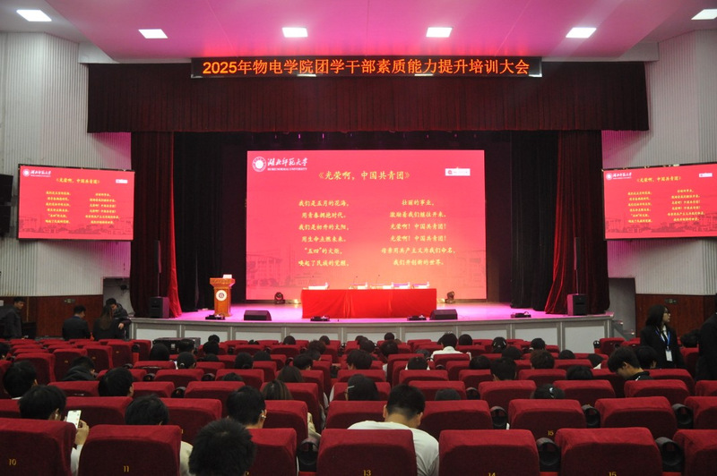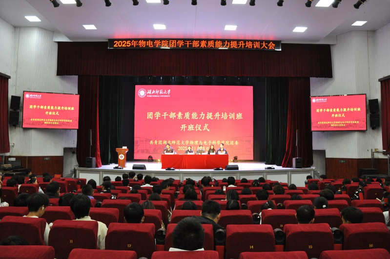 11月28日晚,伟德国际victor1946于湖师大礼堂举行团学干部素质能力提升培训班开班仪式。参与本次开班仪式的有学院党委书记孙丹娟、党委副书记刘雅、学工办仇奥老师、李可老师,学院全体团学干部及24、25级班干部代表。仪式由学院团委副书记田学泽主持。