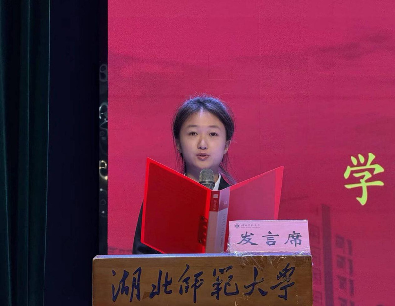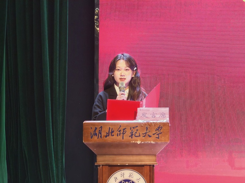 随后,学生会副主席谢馨悦率先发言。她结合自身在组织协调多项校园活动中的经历,生动阐述了对团学工作“服务同学、锻炼自我”宗旨的深刻理解,并表达了作为学生干部所肩负的责任与担当。