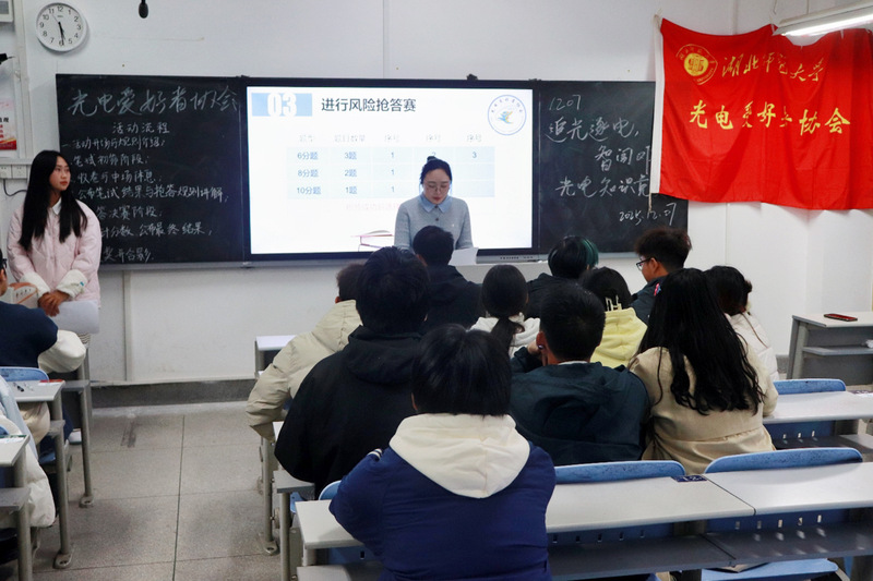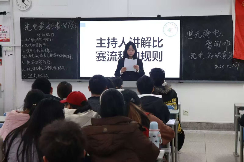 为夯实学生光电领域理论基础,锤炼科学思维与团队协作能力,12月27日,伟德国际victor1946光电爱好者协会于教育大楼1422教室举办了“追光逐电,智闯难关”光电科学知识竞赛。光电爱好者协会会长陈奕霖、全体协会成员与多院参赛选手共同参与本次竞赛。竞赛由秘书部干事刘胜花主持。