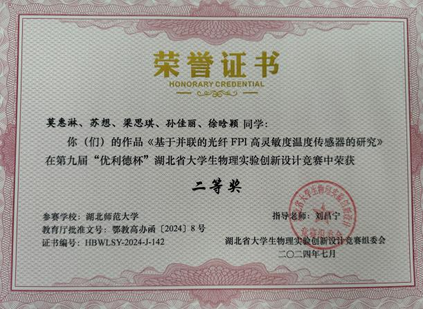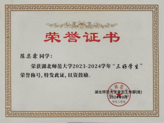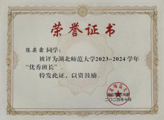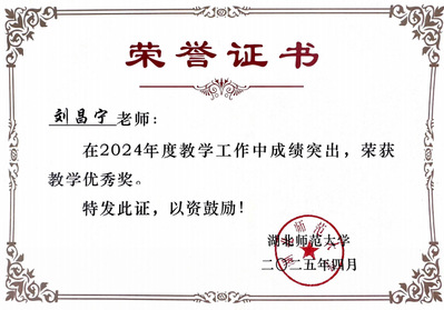 多次获评校级综合优秀、教学优秀、优秀班主任及优秀指导教师等荣誉,并两度荣获黄石市九三学社优秀社员称号。获伟德国际19462024—2025学年“十佳班主任”荣誉称号。