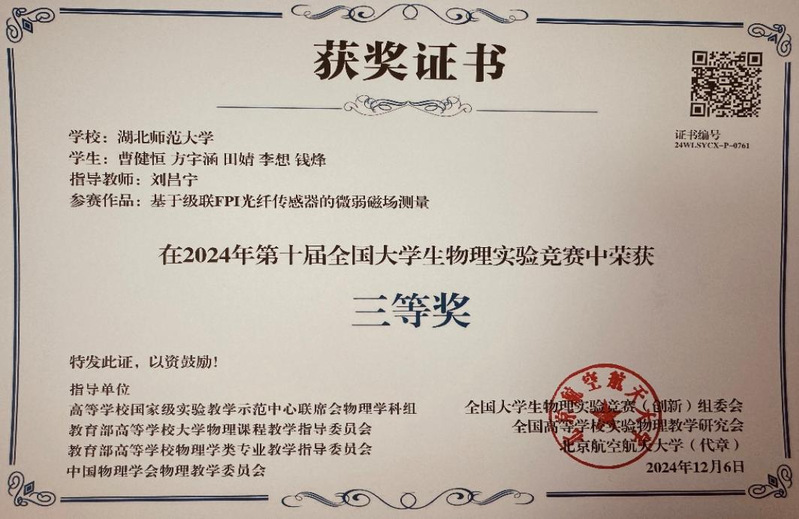 科研方面,主持或参与国家级、省部级自然科学基金项目十余项,近五年以第一作者或通讯作者在光学主流期刊发表论文三十余篇。教学方面,主持完成校级教研项目两项,作为骨干成员获校级教学成果一等奖,并参与建设省级一流课程。人才培养成效显著,注重激发学生创新潜能:指导学生累计获得各类竞赛奖项五十余项,并在全国大学生物理实验竞赛、“挑战杯”竞赛中取得突破性成绩;指导本科生以第一作者发表学术论文十篇,其中六项成果获评大学生优秀科研成果奖;所指导的学生中,多人获得学术科技之星,国家奖学金以及“泰隆之星”,先后四次获批国家级大创项目,六篇毕业论文获评校级优秀。