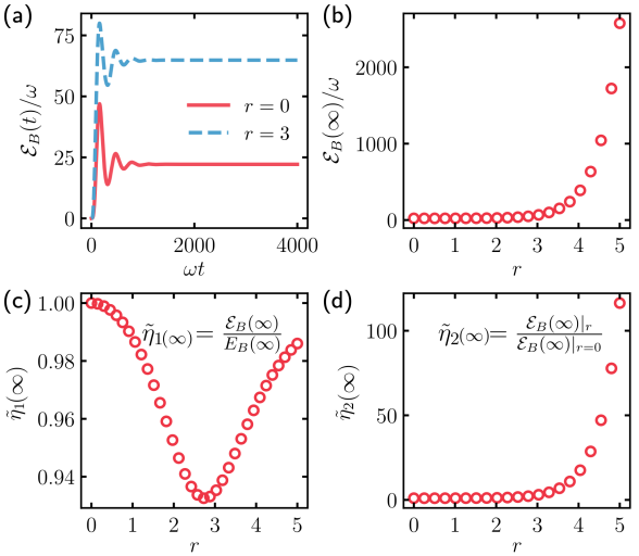 进展量子电池作为下一代储能器件,有望利用量子效应实现远超经典电池的存储容量和充电速度。然而,能量回流与环境退相干是制约其性能的两大关键难题。团队提出并系统研究了一种通过压缩库调控大幅提升双模量子电池性能的创新方案。其核心机制是将量子电池与压缩库耦合,有效抑制能量回流,从而显著提升储能总量和最大可提取功。理论结果表明,该方案中储能随压缩参数呈指数增长,并揭示了在库调控下,哈密顿量中常被忽视的反旋转波项对性能的积极贡献。此外,我们建立了压缩库调控策略与主动哈密顿量调控之间的物理等效性。该方案还被扩展至现实条件,包括有限温度、无外部驱动等模型,验证了其鲁棒性和通用性研究工作为量子电池的性能优化提供了新的方法和研究视角,成果以 “Quantum battery via reservoir engineering”(基于库调控的量子电池) 为题,发表于 Physical Review Applied, 25, 034013 (2026)。论文第一作者为2024级硕士研究生杨,通讯作者为量子光学与量子信息团队熊标副教授其他作者包括2024级硕士研究生方思博、以及东北大学赵成松博士量子光学与量子信息团队单传家教授。