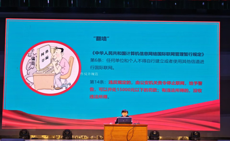 讲座伊始,邓柳欣结合大学生校园生活实际,客观分析当前国家安全与电信诈骗防范的严峻形势,通过贴近师生生活的真实案例,引导大家深刻认识安全防范工作的重要性。
